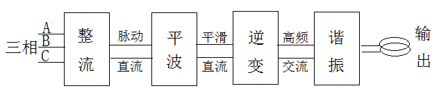 GGP系列固態(tài)高頻電源采用現代電力電子(交-直-交)變換技術,將三相工頻50Hz的交流電經整流單元轉變?yōu)槊}動直流,然后通過濾波單元變換為平滑直流,再通過逆變器將直流電轉變?yōu)閱蜗喔哳l交流電(100~600kHz)送至匹配變壓器,為由曹路電容、感應器等組成的串聯(lián)諧振電路提供能量,感應器通過非接觸方式將能量傳遞給工件,以達到感應加熱的目的。該電源采用MOSFET模塊作為逆變器的核心元器件,整流和逆變單元均采用單片機作為核心控制器件,具有電路穩(wěn)定可靠、操作簡單、調試方便。